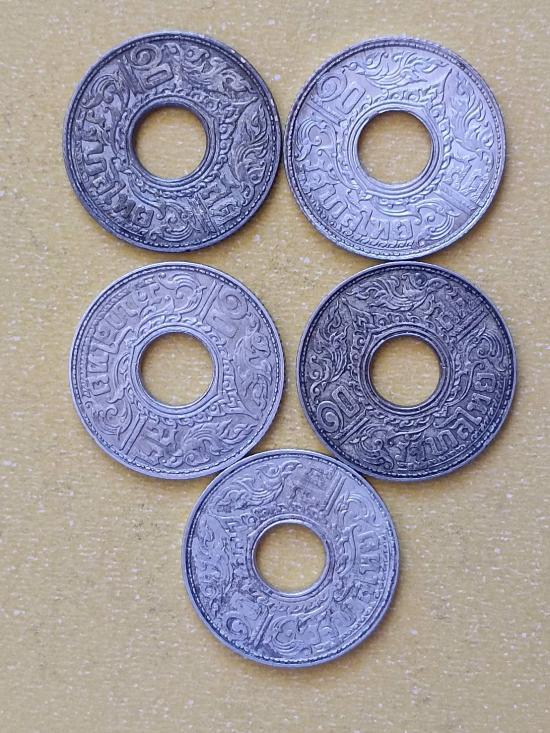# 4 #เหรียญ 10 สตางค์ เนื้อเงิน 5 เหรียญ สภาพตามรูปเลยครับ