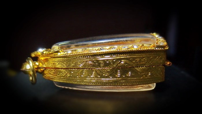 ตลับเงินชุบทองใส่พระกริ่งเพชรล้อม |