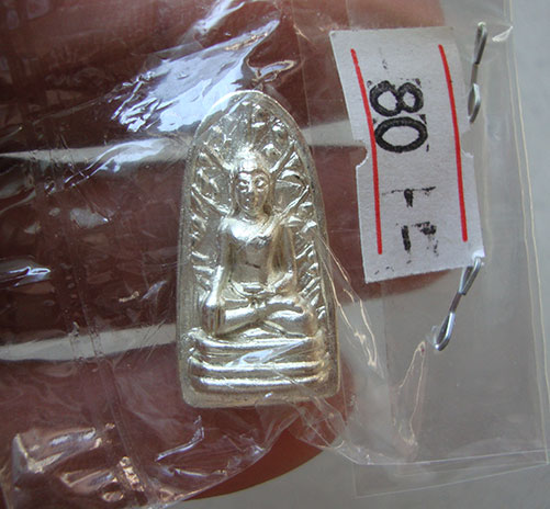 พระรอดเนื้อเงิน รุ่นปิดทอง ปี51 วัดพระธาตุหริภุญชัย จ.ลำพูน หมายเลข 80 สร้างน้อย กล่องไม้เดิมอย่างดี สภาพสวยครับ