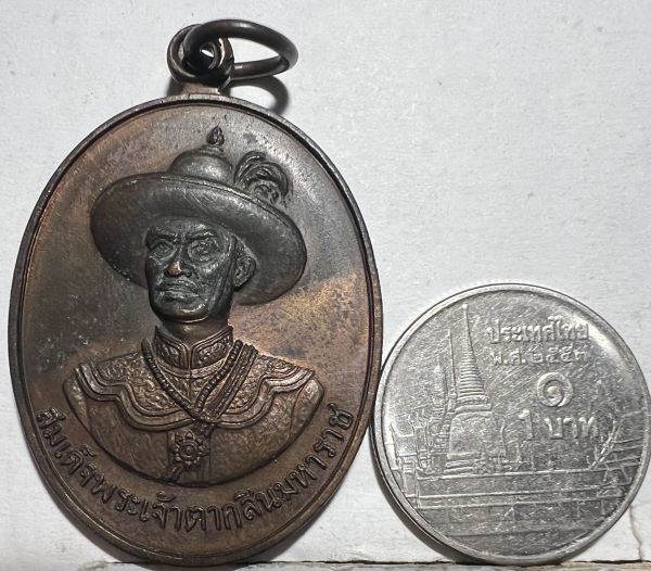 เหรียญสมเด็จพระเจ้าตากสินมหาราช ที่ระลึกงานพิธีเปิดเตชะบรรพบูชานุสรณ์สถาน ปี พ.ศ. 2526 ครับ