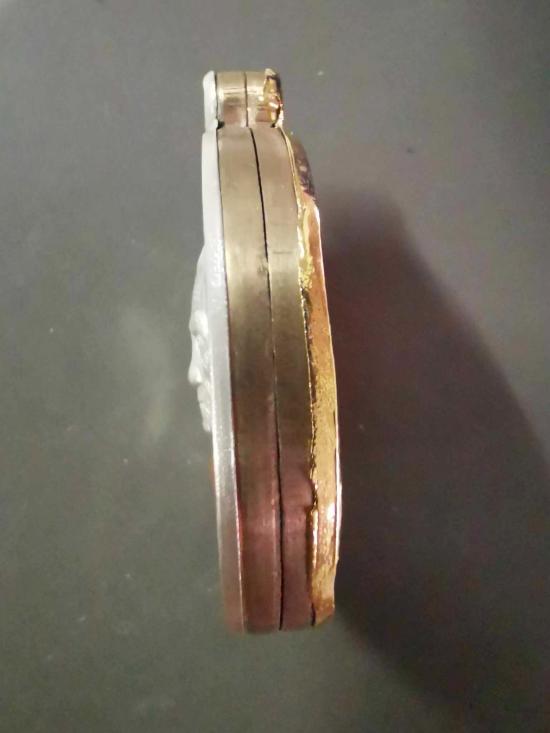 เหรียญรุ่นอายุยืน หลวงปู่อิ่ม ปัญญาวุโธ วัดทุ่งนาใหม่ นครศรีฯ เนื้อนวะ ประกบ นวะ หน้ากากเงิน หน้ากากทองทิพย์ กรรมการ เลข 50 กล่องกัมมะหยี่