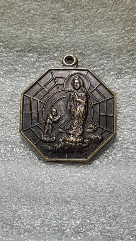 วัดใจเคาะเดียว.......100.......เหรียญเจ้าแม่กวนอิมหลังพระปิดตา หลวงพ่อทองสุข วัดสะพานสูง นนทุบรี ปี20 |