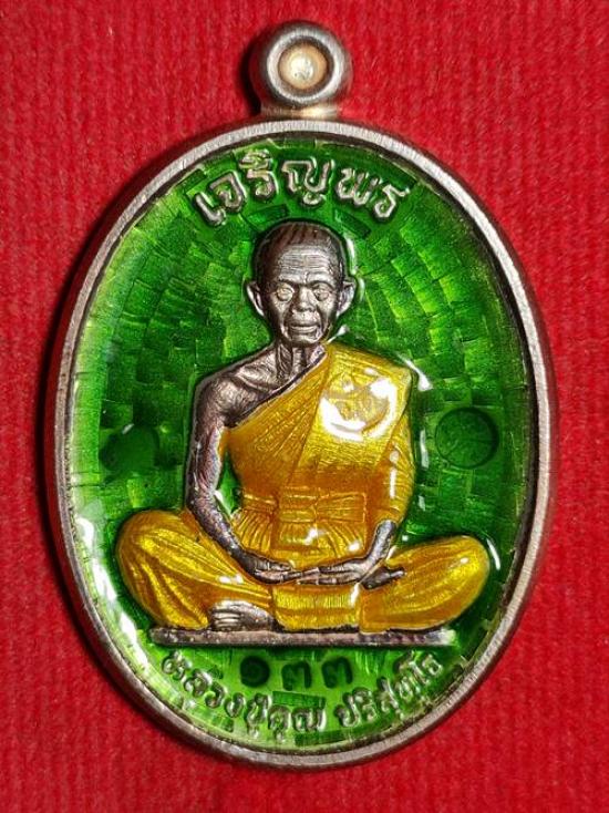 เหรียญหลวงพ่อคูณ ปริสุทโธ รุ่น เจริญพรบนเทพ ประทานพร ออกวัดบ้านไร่ ปี 58 เนื้อ เงินลงยาสีเขียว หมายเลข 133 สภาพสวย เคาะเดียวแดง |