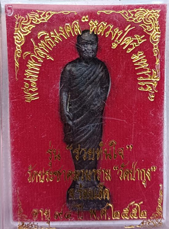 เคาะเดียว รูปหล่อยืน"รวยทันใจ"หลวงปู่ศรี มหาวีโร วัดป่ากุง ปี 2552 ผิวรมดำ พร้อมกล่องเดิม