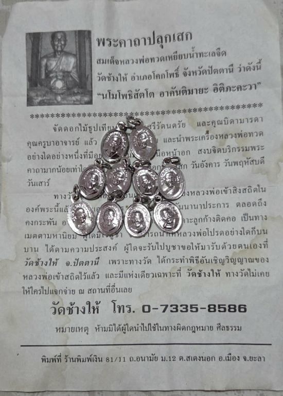 เหรียญเม็ดแตง หลวงปู่ทวด วัดช้างให้ "พิธีเสาร์5 เดือน5 ปี55" ชุบนิเกิล 10 เหรียญ พร้อมใบคาถา 10 ใบ |