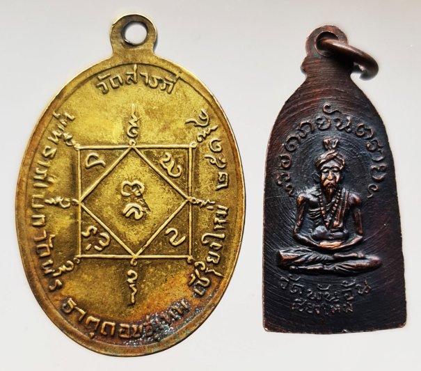 ชื่อพระเครื่อง << วัดใจ >> เหรียญครูบาศรีวิชัย สิริวิชโย ออกวัดสารภี ปี2515 + เหรียญพระรอดภยันตรายหลังฤาษี วัดพันอ้น จ.เชียงใหม่ พิธีใหญ่ ปี2513