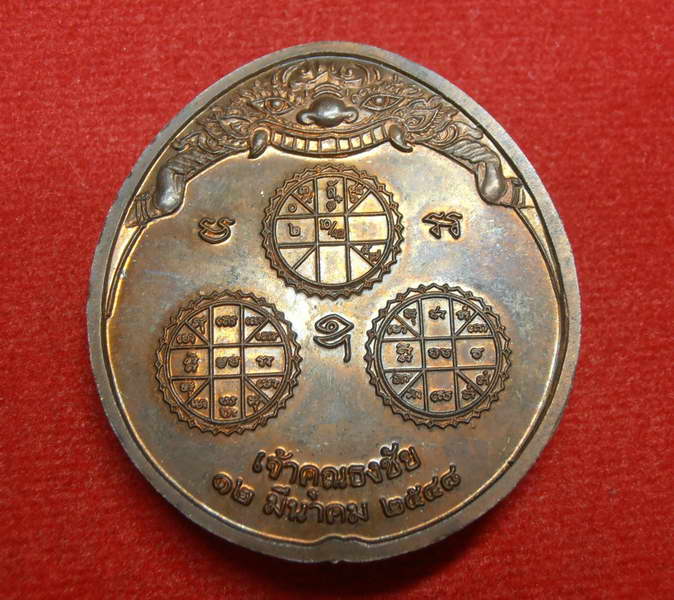 เหรียญพระนารายณ์ทรงครุฑประทับพระราหู หลังดวงเมือง เจ้าคุณธงชัย วัดไตรมิตรวิทยาราม ปี 2548 ประกอบด้วย พระนารายณ์ทรงครุฑ เป็นมหาอำนาจ ประทับพระราหู ด้านบนเป็นรูปเศียรพญานาค 9 เศียร อันหมายถึง พระเสาร์เทวา ซึ่งเป็นพระเคราะห์คู่มิตรกับพระราหู ที่แปรเปลี่ยนกลับร้ายกลายเป็นดี ด้วยมีอำนาจแห่งพระนารายณ์ สยบกำลังร้ายของพระราหูช่วยเกื้อหนุนดวงชะตาชีวิต ด้านหลัง ประกอบด้วยดวงเมืองกรุงเทพมหานครอยู่ด้านบน ด้านล่างซ้ายขวา คือ ยันต์จันทรประภาและสุริยประภา หรือสุริยัน-จันทรา ซึ่งเป็นยอดแห่งพญายันต์ที่ให้คุณทางด้านโชคลาภ ทรัพย์สิน เงิน-ทอง เป็นความหมายที่ซ่อนอยู่ในตำนานเทวกำเนิด โดยมีพระราหูเทวา เป็นผู้ควบคุม อันเป็นคุณวิเศษประการสำคัญของพระราหูในด้านดี อันจะบันดาลให้กับผู้บูชา โดยเฉพาะสมบัติจักรพรรดิ ที่เรียกว่า "สัตตรัตนมณี"