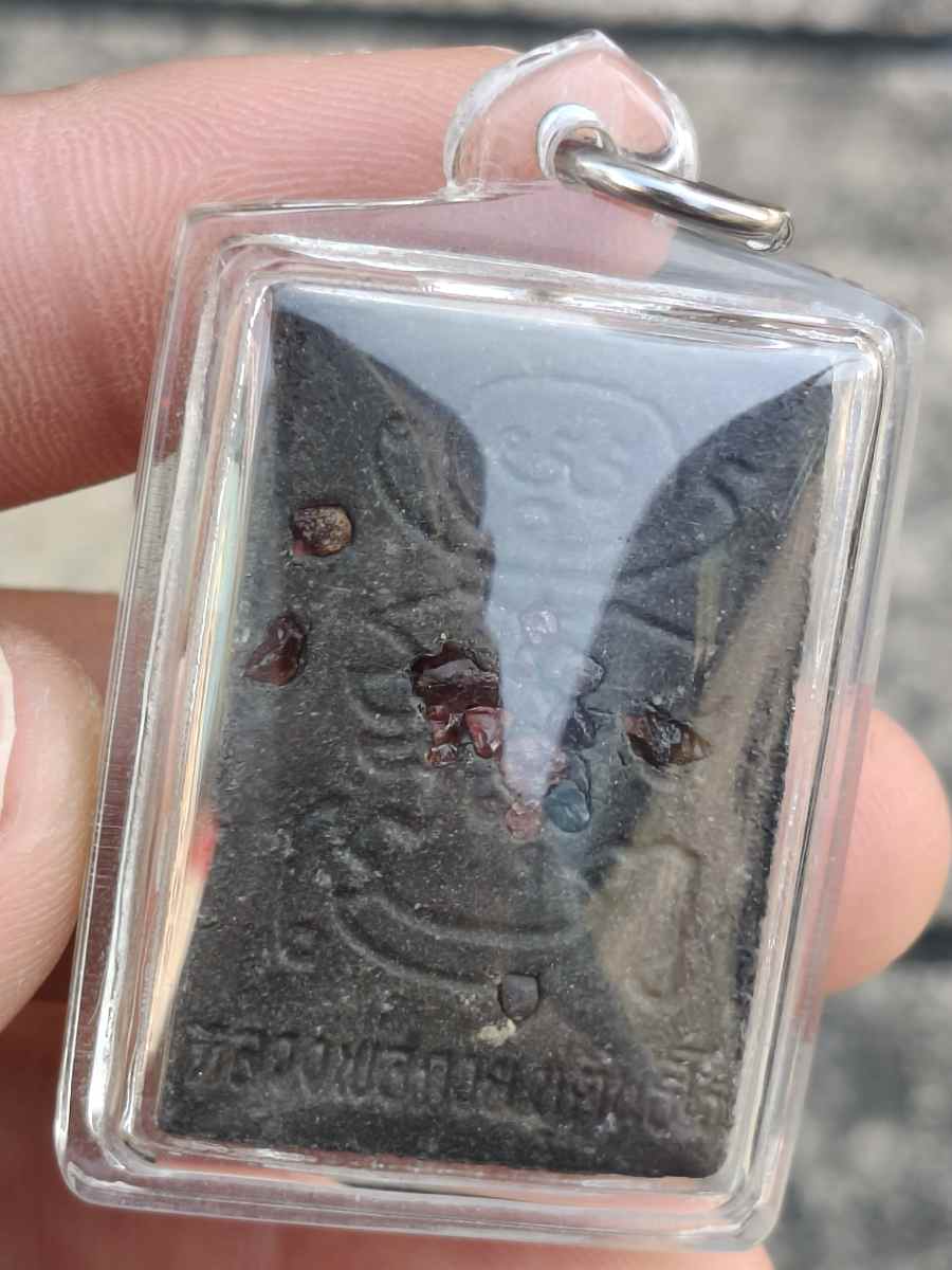 สมเด็จแหวกม่าน หลวงพ่อกวย เนื้อผสมเหล็กน้ำพี้ หลังยันต์ฝังพลอย หลวงปู่หมุนเสก ออกวัดซับลำใย ปี 43 |
