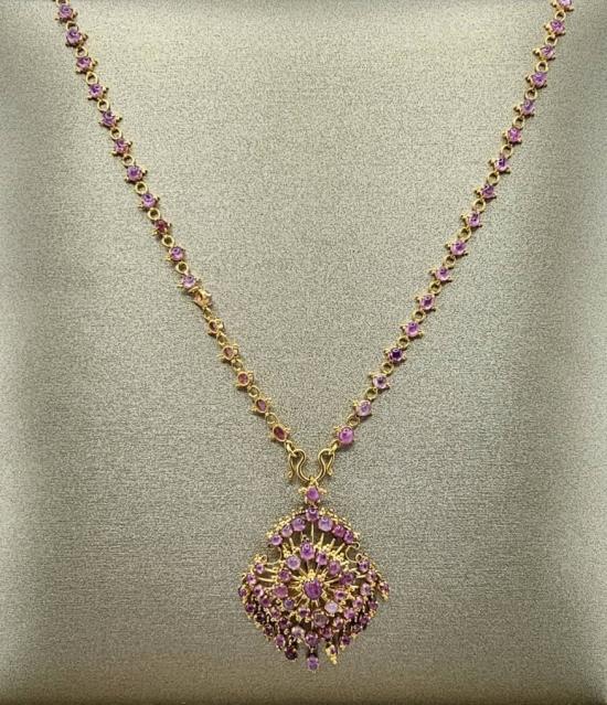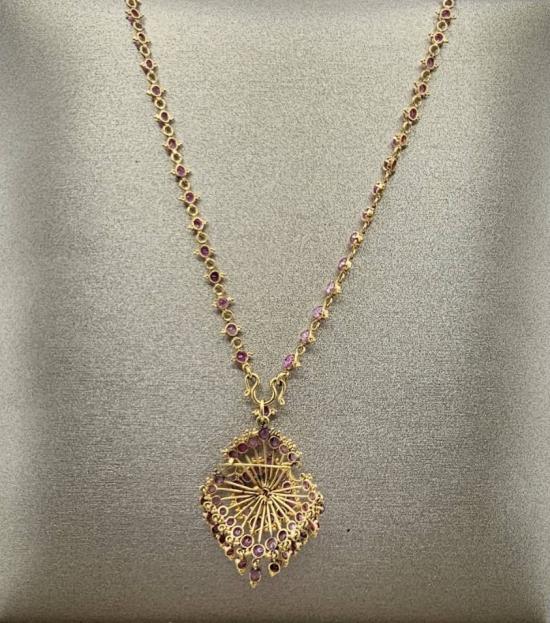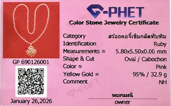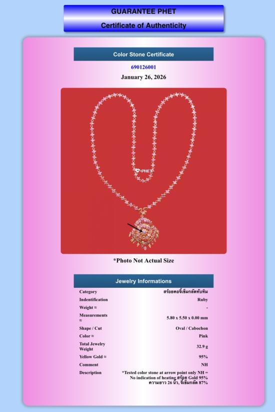 สร้อยทอง 95% จี้ทอง 87% สร้อยคอ+จี้เข็มกลัดทับทิม (น้ำหนัก 32.9 กรัม) ความยาว 26 นิ้ว **พร้อมบัตรจีเพชร** |
