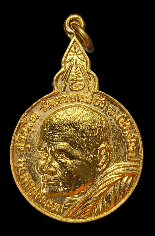 เหรียญ หลวงปู่แหวน วัดดอยแม่ปั๋ง รุ่นเมตตาสร้างเจดีย์ พะเยา ปี 2520 กะไหล่ทองสวยงามมาก |