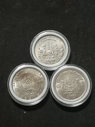ชื่อพระเครื่อง เหรียญ 1 บาท ที่ระลึก รัชกาลที่9 มีตัวติดหายาก จำนวน 3 เหรียญ สภาพสวยพร้อมตลับ (เคาะเดียว)
