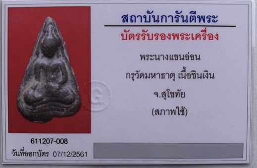 พระนางแขนอ่อน เนื้อชินเงิน กรุวัดมหาธาตุ จ.สุโขทัย+ บัตรรับรองครับ