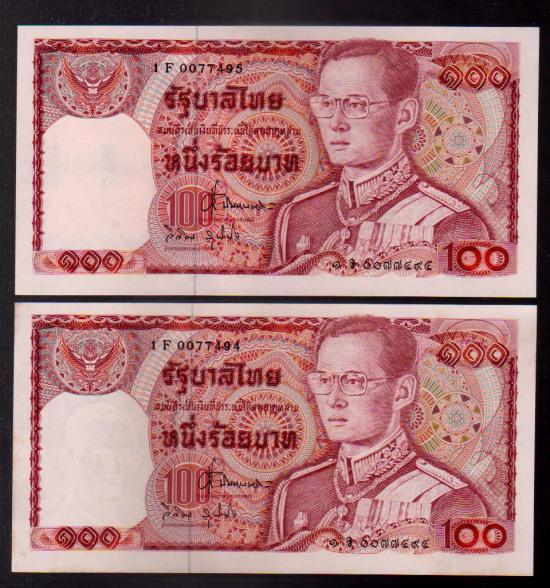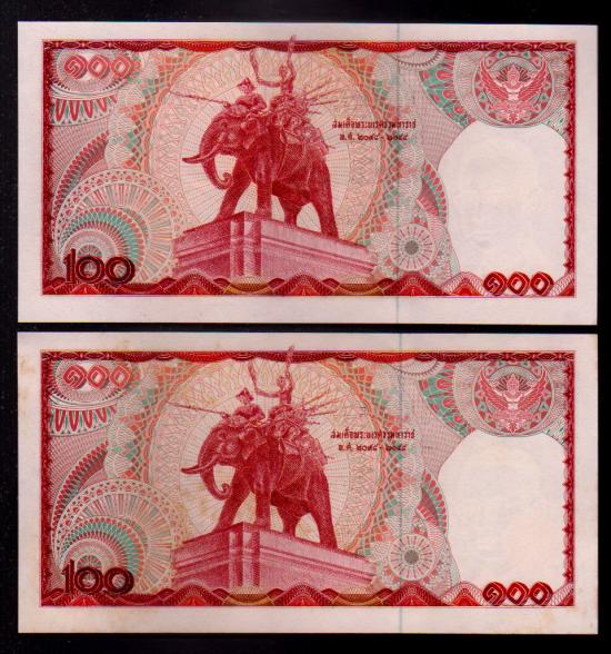 ## ธนบัตร 100 บาท ## ช้างแดง ## เรียงเลข 2 ฉบับ ## ไม่ผ่านการใช้