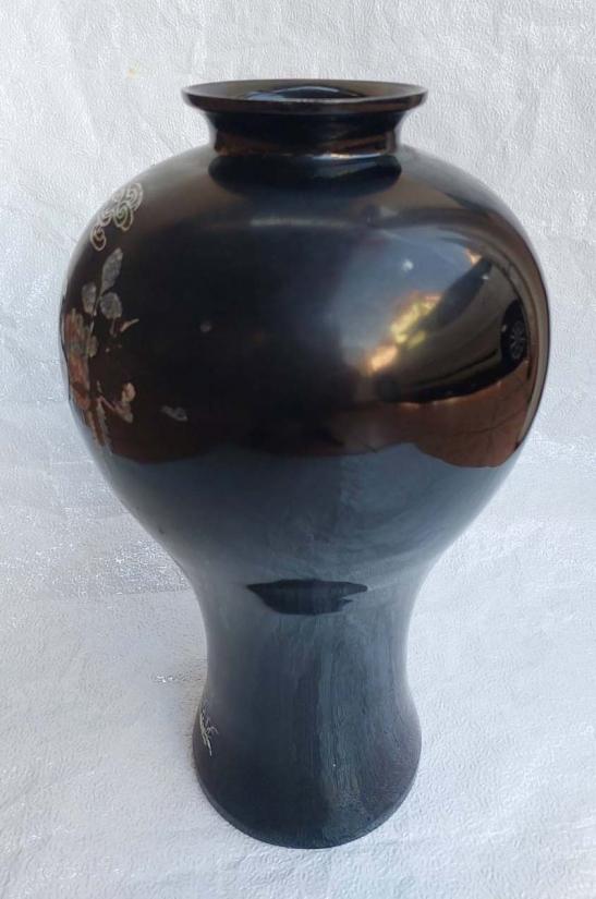 แจกันใบใหญ่ไฟเบอร์กลาส สีดำฝังเปลือกหอยมุกสไตล์เกาหลี