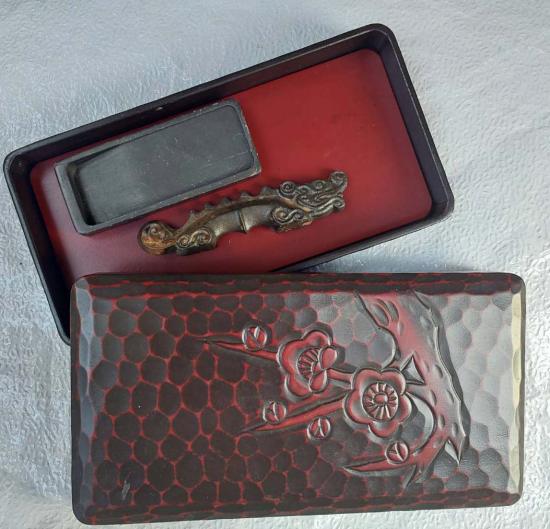 ***วัดใจ***กล่องหินฝนหมึกแกะสลักสไตล์ญี่ปุ่น ชุดอุปกรณ์เครื่องเขียนโบราณ กล่องไม้ใช้เก็บอุปกรณ์พระเครื่องได้ |