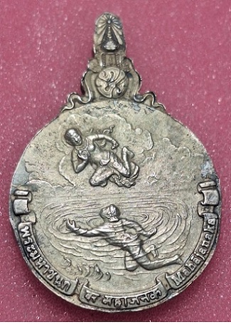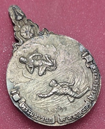 วัดใจ เหรียญพระมหาชนก เนื้อเงิน พิมพ์เล็ก ปี42 สภาพใช้