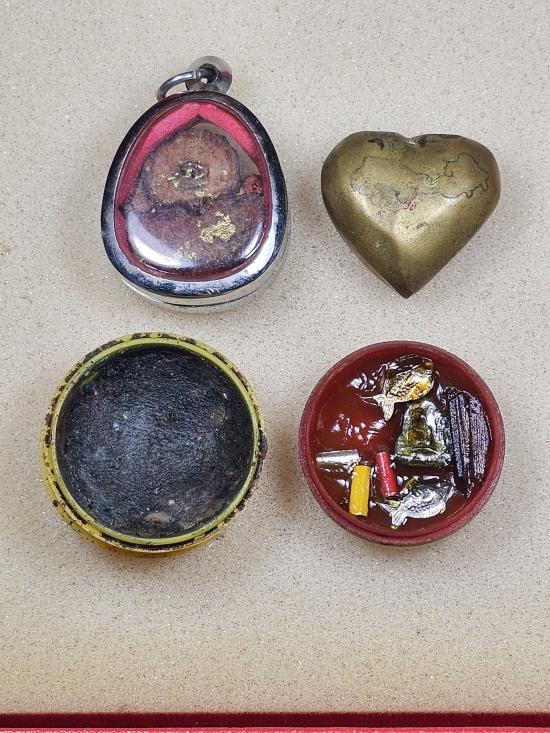 รวมเครื่องรางไม่ทราบที่ ทองเหลืองหล่อรูปหัวใจ ไม้มงคล ตลับสีผึ้ง 2 ตลับ วัดใจเคาะเดียวจบในราคาที่ท่านเลือก |