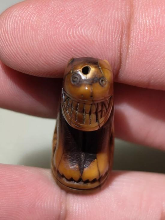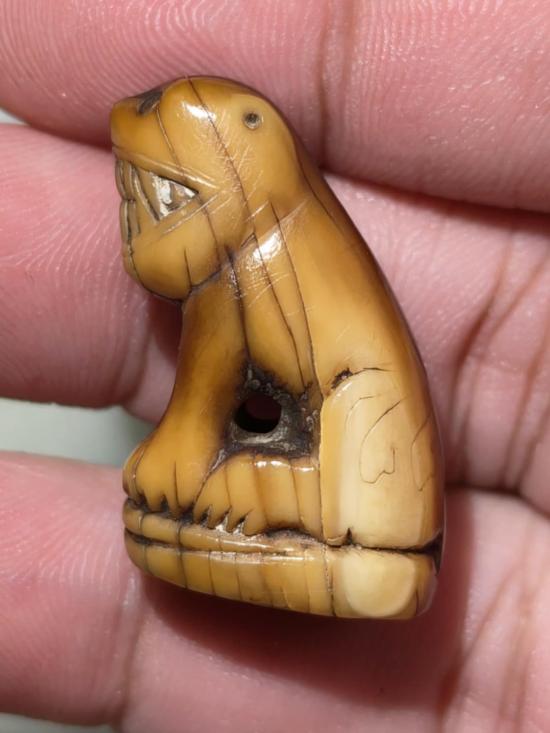 รายละเอียด เสือหลวงพ่อปาน วัดบางเหี้ย หรือวัดมงคลโคธาวาส คือ สุดยอดจักพรรดิ์แห่งเครื่องรางอันดับ 1 ของประเทศในชุดเบญจภาคีเครื่องราง "หลวงพ่อปาน" หรือ "พระครูพิพัฒน์นิโรธกิจ" เป็นชาวบางบ่อ ตำบลบางเหี้ย จังหวัดสมุทรปราการ เกิดเมื่อปี พ.ศ. 2368 มรณภาพเมื่อ วันที่ 29 สิงหาคม 2453 เสือของท่านดีทางมหาอำนาจ และคงกระพันยอดเยี่ยม หรือจะใช้ในทางเมตตามหานิยม ค้าขายของก็ดี ในปี พ.ศ. 2443 พระบาทสมเด็จพระจุลจอมเกล้าเจ้าอยู่หัว รัชกาลที่ 5 เสด็จไปที่ตำบลบางเหี้ย เพื่อที่จะทำพิธีเปิดประตูน้ำ ปรากฏเรื่องที่หลวงพ่อปานได้เอาชิ้นหมูเสียบกับไม้ แกว่งล่อเอาเสือที่ตกลงน้ำต่อหน้าพระพักตร์ หลังจากนั้นพระพุทธเจ้าหลวง มีรับสั่งถามว่า "ที่แจกเครื่องรางเป็นรูปเสือมีความหมายอย่างไร ?" หลวงพ่อปานทูลตอบว่า "ได้ไปรุกขมูลธุดงค์ในป่า พบเสือใหญ่หลายครั้ง ได้สังเกตดูเห็นว่า "เสือ" เป็นสัตว์ปราดเปรียว ฉลาด ว่องไว เฉียบขาด มีตบะ และอำนาจ สามารถที่จะใช้ตาสะกดสัตว์อื่นให้อยู่ในอำนาจได้ คนทั่วไปเรียกผู้ร้ายใจฉกรรจ์ว่า "ไอ้เสือ" ก็คือเอาความเก่งกาจของเสือมานั่นเอง การที่ทำเครื่องรางรูปเสือ มิใช่จะสนับสนุนให้คนกลายเป็น "อ้ายเสือ" เพียงแต่ต้องการเอาลักษณะของเสือจริงในป่า ที่ปราดเปรียว ว่องไว เฉลียวฉลาด เฉียบขาดมาเป็นตัวอย่างเท่านั้น" พระพุทธเจ้าหลวงทรงพระราชทานผ้าไตร ผ้ากราบ และได้พระราชทานสมณศักดิ์เป็น "พระครูพิพัฒน์นิโรธกิจ" พระราชนิพนธ์เรื่อง "เสด็จประพาส มณฑลปราจิณ" ได้เล่าถึงหลวงพ่อปานความตอนหนึ่งว่า "คุณวิเศษที่คนเลื่อมใสคือ ให้ลงตะกรุด ด้ายผูกข้อมือ รดน้ำมนต์ ที่นิยมกันมากคือ เขี้ยวเสือแกะเป็นรูปเสือ เล็กบ้าง ใหญ่บ้าง ฝีมือหยาบๆ …. เวลาแย่งชิงก็ขึ้นไปถึง 3 บาท ว่า 6 บาทก็มี ได้รูปเสือนั้นแล้วจึงไปให้พระครูปลุกเสก" การพิจารณาเสือหลวงพ่อปานต้องดูที่ รูปทรง ศิลป์ ฟอร์มการแกะ ความเก่าตามธรรมชาติของเขี้ยว แต่สิ่งสำคัญที่สุดก็คือ "รอยจาร" หรือลายมือของหลวงพ่อ ส่วนมากรอยจารใต้ฐานจะมี ยันต์ "อุ" อยู่ด้านบน ยันต์ "กอหญ้า" อยู่ซ้ายขวา และ ยันต์ "ฤ ฤา" ด้านล่าง (หากเป็นเขี้ยวซีกโดยปกติจะมีแค่ยันต์กอหญ้า ถ้าพิเศษขึ้นมาจะมีจาร ฤ ฤา) บริเวณตามลำตัวเสือจะเป็นตัวเลขไทย และยันต์อุ การจดจำลายมือนั้นสำคัญมาก จากนั้นค่อยพิจารณาถึงศิลป์การแกะของช่าง หากจะแบ่งเสือหลวงพ่อปานแบบลึกๆนั้น สามารถแบ่งได้เป็น 6 อย่างคือ 1)อ้าปากจารปกติ 2)หุบปากจารปกติ 3)ศิลป์วัดกลางหรือศิลป์ชาวบ้าน 4)อ้าปากจารขน 5)หุบปากจารขน และ6)ศิลป์พิเศษ หรือเสือตาเม็ด หรือเสือตาเนื้อ