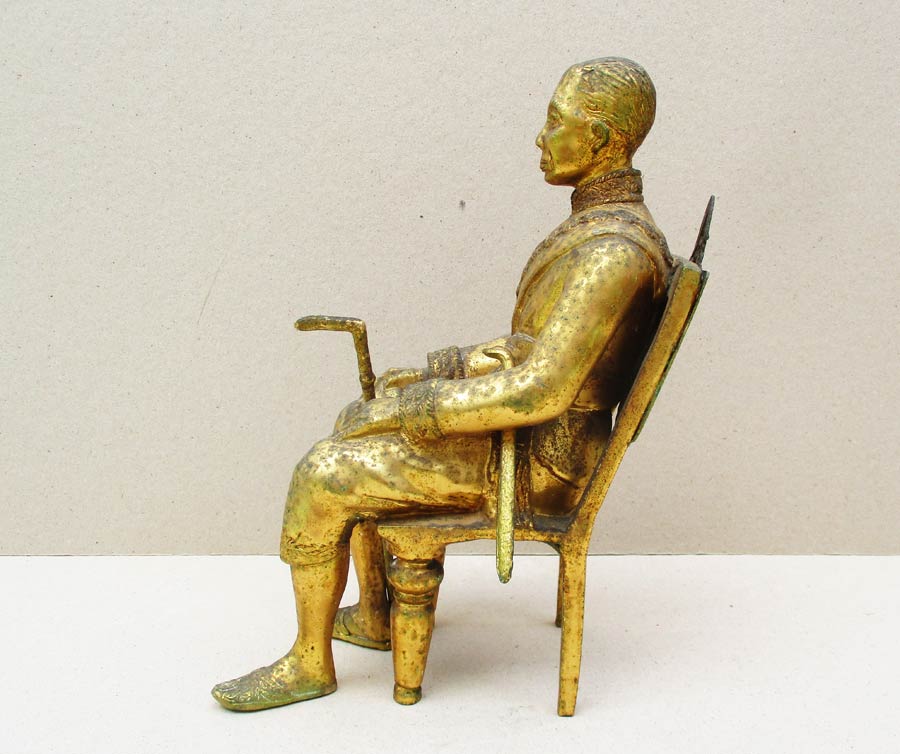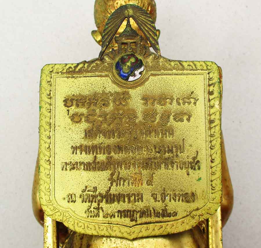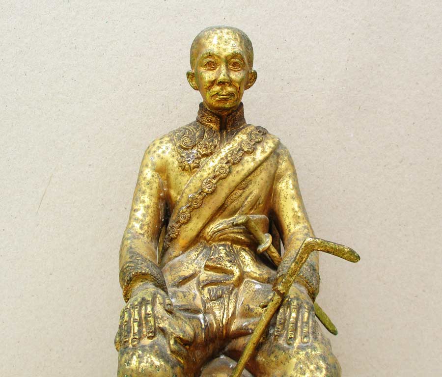 พระบรมรูปบูชา พระบาทสมเด็จพระจอมเกล้าเจ้าอยู่หัว รัชกาลที่ 4 วัดศีลขันธาราม จ.อ่างทอง พ.ศ.2521 เนื้อโลหะกะหลั่ยทอง ผิวแห้งหิ้ง 3 ถอด !!