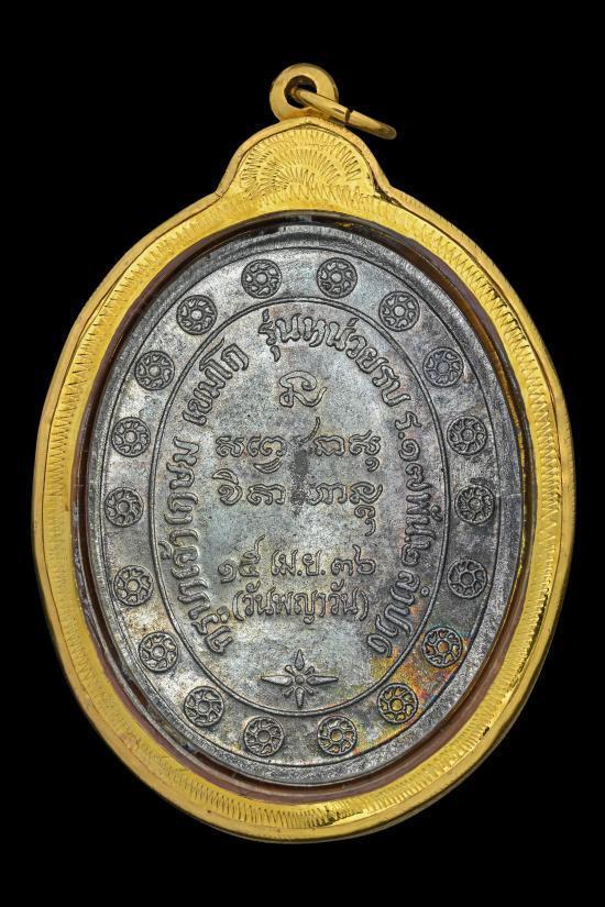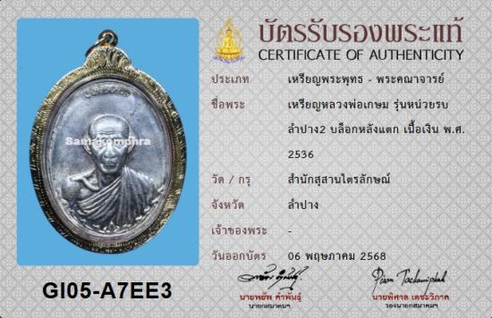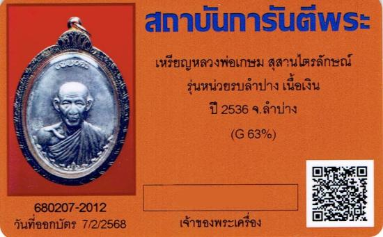 หรียญกองพันลำปาง 2 เนื้อเงิน หลวงพ่อเกษม(บล็อคนิยม หลังแตก) พร้อมเลี่ยมทอง+บัตรรับรอง2สถาบัน