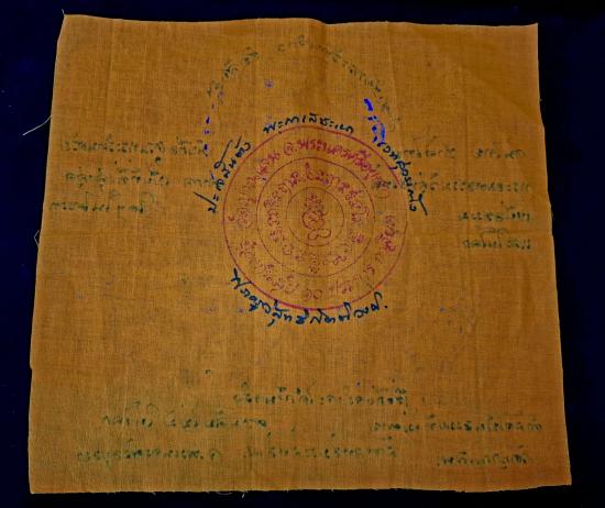 ผ้ายันต์รัตนจักร หลวงปู่ชื้น วัดญาณเสน ยันต์ 3 ดวง มีจาร ปั๊มตรากำกับ กว้าง 9.5 นิ้ว ยาว 10.5 นิ้ว สร้างน้อย