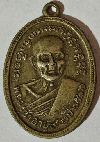 เหรียญรุ่นแรก พระครูซำ หลังหลวงพ่อเพชร วัดตลาดใหม่ เนื้ออัลปาก้า จ.อ่างทอง ปี2506 |