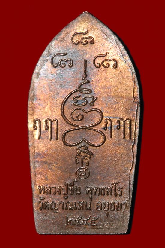 ปรกมะขาม หลวงปู่ชื้น วัดญาณเสน จ.อยุธยา ปี 2545 ทองแดง จำนวนสร้างปรกใบมะขาม รุ่นแรก และ รุ่นเดียวของหลวงปู่ชื้น ปี2545 เนื้อทองคำ สร้าง 35 องค์ เนื้อลูกแก้วสร้าง 81 องค์ เนื้อเงิน 500 องค์ เนื้อนวะ 30 |