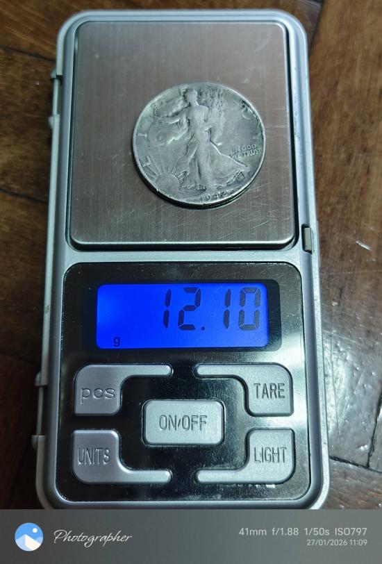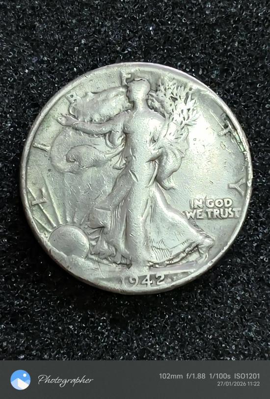 เหรียญเนื้อเงิน HALF DOLLAR ปี 1942 เงิน 90 % น้ำหนัก 12.1 กรัม เก่าน่าสะสม แท้รับประกัน