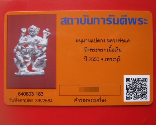 หนุมาน 8 กร หลวงพ่อแล วัดพระทรง จ.เพชรบุรี ปี 2550 เนื้อเงิน