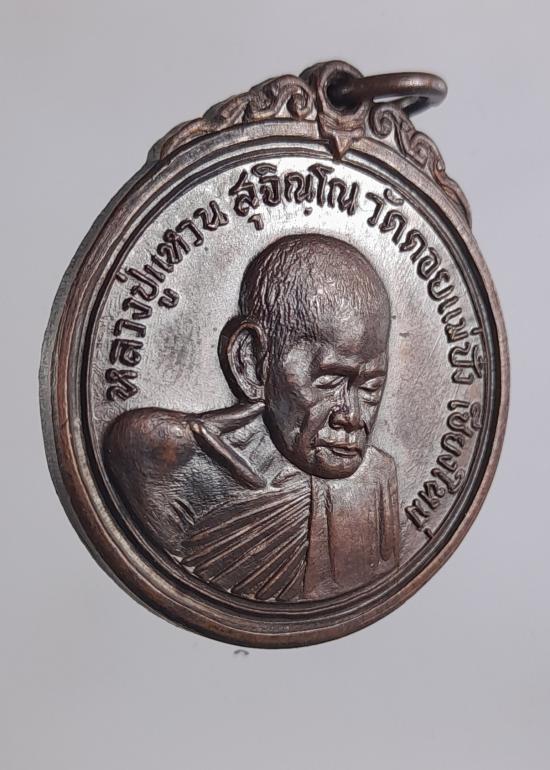 เหรียญสร้างเจดีย์84หลวงปู่แหวน วัดดอยแม่ปั๋งจัดสร้าง พ.ศ.2517 อ.พร้าว จ.เชียงใหม่