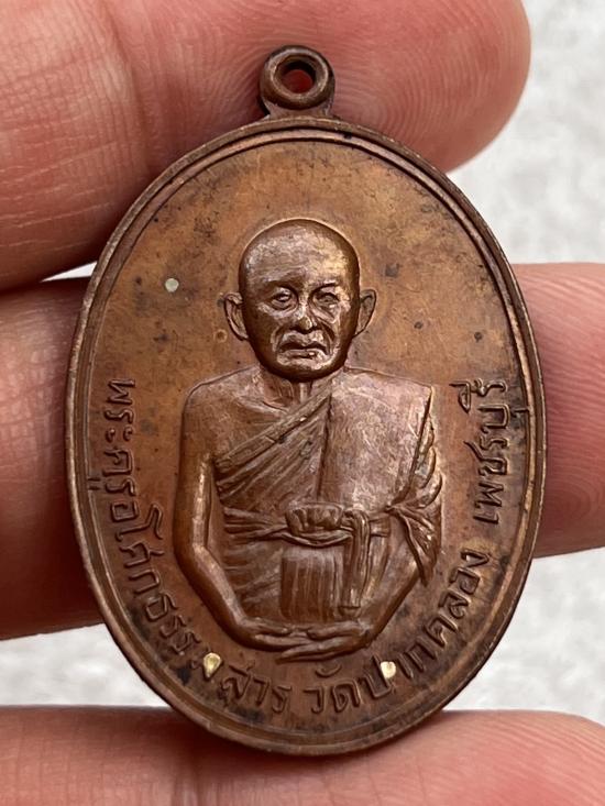 เหรียญกลมใหญ่ พระครูอโศกธรรมสาร วัดปากคลอง จ.เพชรบุรี ครบรอบ ๑๐๔ ปี 2519 เนื้อทองแดง