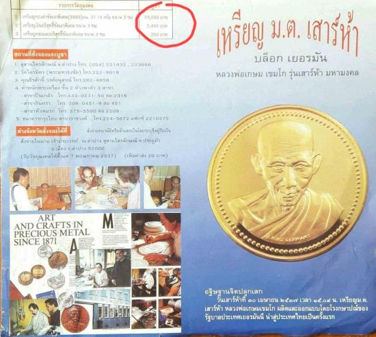 เคาะเดียวแดง เหรียญ ม.ต. เสาร์ห้า บล็อกเยอรมัน เนื้อเงินบริสุทธ ิ์ขัดเงา พร้อมกล่อง ปี 37