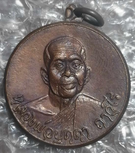 เหรียญกลมรุ่น ๔ ม.๑ เนื้อทองแดง หลวงปู่บุดดา ถาวโร วัดกลางชูศรี จ.สิงห์บุรี ปี 2520 (หูเหรียญปั้มเขยื่อนตามรูป) |