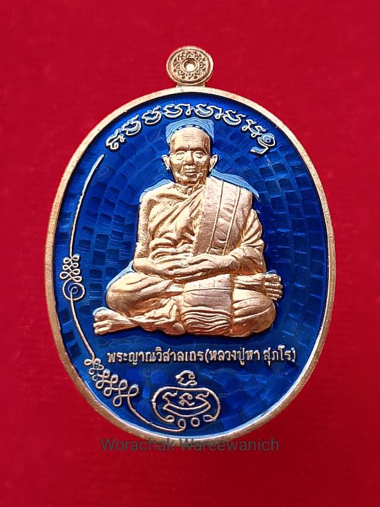 เหรียญมนต์พระกาฬ พระญาณวิสาลเถร (หลวงปู่หา สุภโร) วัดสักกะวัน อ.สหัสขันธ์ จ.กาฬสินธุ์ ปี ๒๕๖๒ เนื้อทองแดง ลงยาสีน้ำเงิน ตอกโค๊ต เลข ๕๖ เลขสองหลักเรียงสวย พร้อมกล่องเดิมครับ