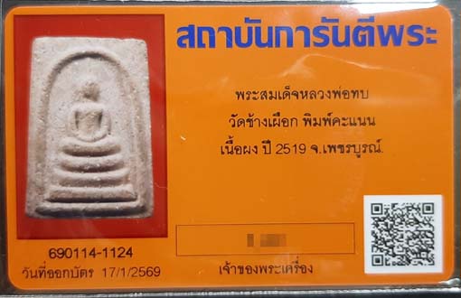 สมเด็จคะแนน หลวงพ่อทบ เนื้อผง ปี2519 วัดช้างเผือก จ.เพชรบูรณ์ พร้อมบัตรรับรองครับ |