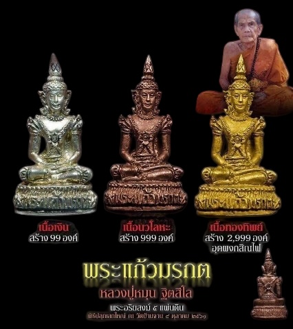 พระแก้วมรกต หลวงปู่หมุน ฐิตสีโล วัดบ้านจาน จ.ศรีสะเกษ ปี 2561 เนื้อทองทิพย์