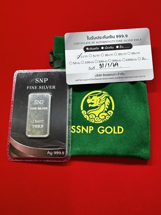 เงินแท่งบริสุทธิ์ 999.9% ( FINE SILVER 999.9% ) SNP ห้างทองแสงนภา พร้อมถุงผ้า+ใบรับประกัน ขนาด 1 บาท