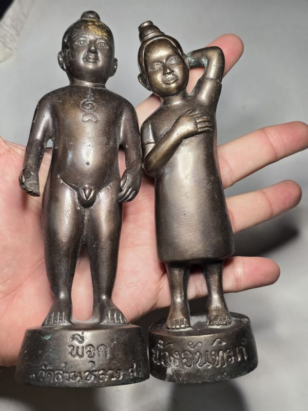 (มีรอยเจิมใต้ฐาน) พี่จุกน้องจันทิมา หลวงพ่อใหม่ วัดสวนหลวง ขนาดบูชา แท้ทันหลวงพ่อ ใต้ฐานอุดมวลสารสีม่วงๆ