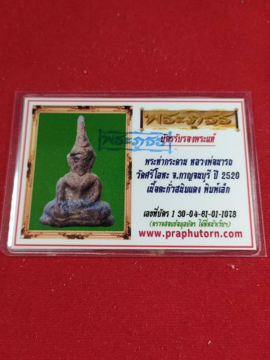 พระท่ากระดาน พิมพ์เล็ก หลวงพ่อนารถ วัดศรีโลหะ เนื้อตะกั่วสนิมแดง ปี 2520 จ.กาญจบุรี พร้อมบัตรรับรอง