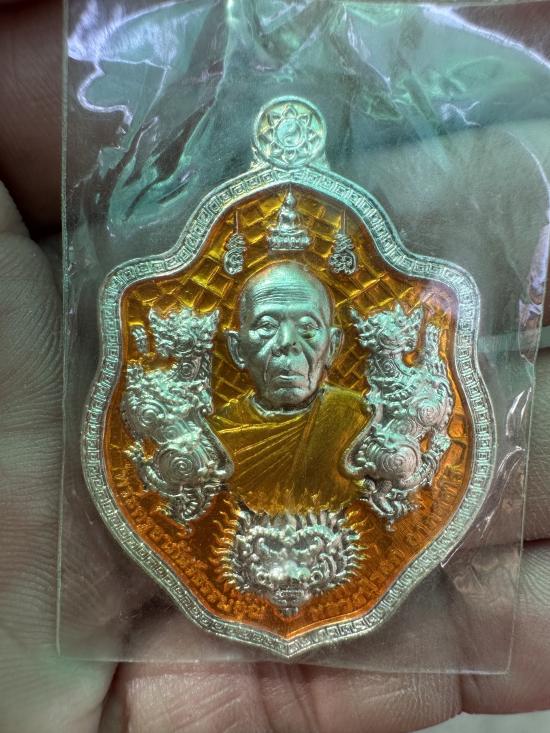 เหรียญ รวยรับทรัพย์ หลวงปู่รอด วัดโคกกรม เนื้อกะไหล่เงิน ลงยาเหลือง
