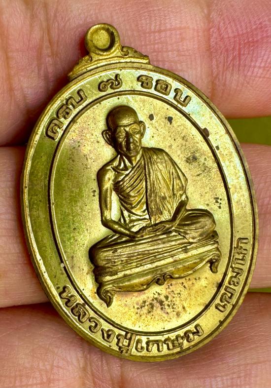 วัดใจ เหรียญ รุ่นครบ 7 รอบ อธิษฐานจิตปลุกเสก โดยหลวงพ่อเกษม เขมโก วันที่ 31 มกราคม พ.ศ. 2538 (ตรงกับวันตรุษจีน) เนื้อทองฝาบาตร