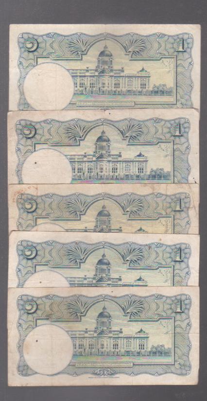 ## ## ธนบัตร 1 บาท ## โทมัส ## ลายน้ำพาน ## 5ฉบับ