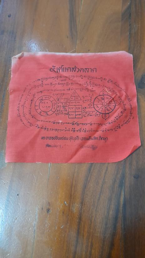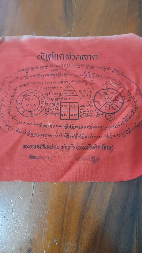 ชื่อพระเครื่อง วัดใจเคาะเดียว........100.......ผ้ายันต์ ยันต์แคล้วคลาด พระอาจารย์อินทร์สม ชุตินุธโร ขนาด 9 x 9 นิ้ว