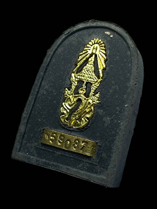 พระหลวงปู่ทวด รุ่น ภปร. ปี 2547 พิมพ์กลีบขนุน (พระรอด นิยม) หลังฝังแผ่นพระปรมาภิไธย ภ.ป.ร. หมายเลข 59087 พิธีใหญ่ วัดพระแก้ว พุทธสมาคมแห่งประเทศไทย ในพระบรมราชูปถัมภ์ได้จัดแถลงข่าวการจัดสร้าง