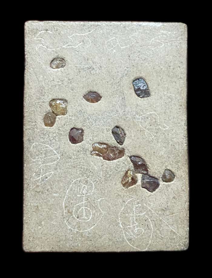 พระเหนือราหู หลวงปู่สำราญ อนุตฺตโร วัดเจริญสุข จ.สระแก้ว ด้านหลังฝังพลอย และ จารหลวงปู่ เรียบ สวย