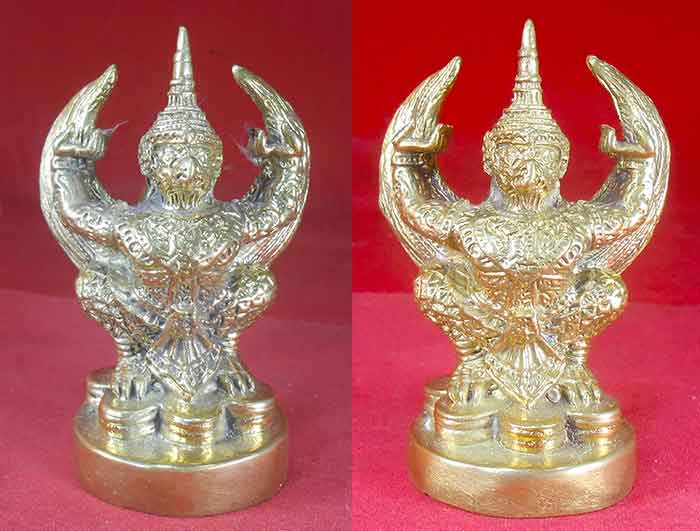 รายละเอียด พญาครุฑ ทองเหลือง ขนาดบูชาหน้าตัก 1.6 นิ้ว สูง 3.5 นิ้วหลวงพ่อทองสุข วัดหนองหม้อ ปลุกเสก
