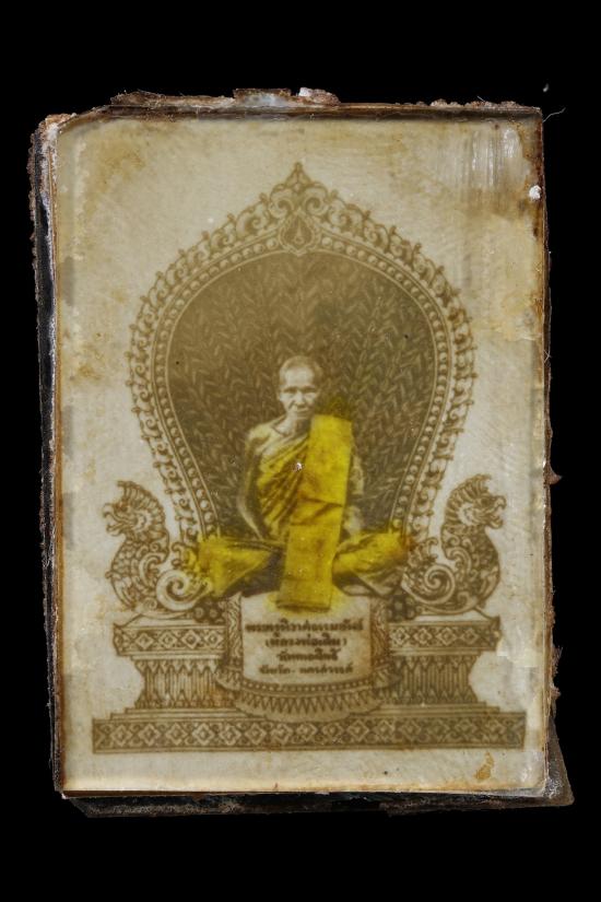 ไม่แพง เคาะเดียว รูปถ่ายกรอบกระจกแววนกยูง หลวงพ่อเดิม แต้มสีเหลือง |