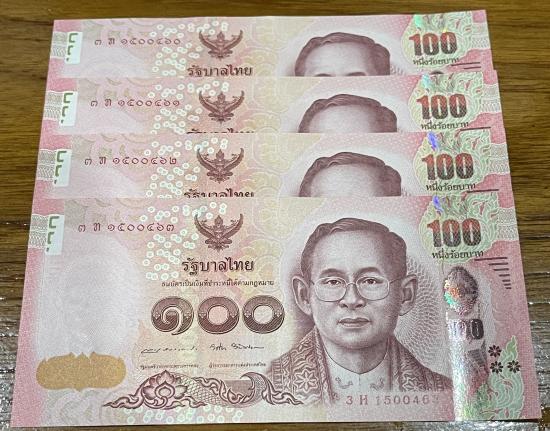 ++++430++++ธนบัตร100บาท เลขเรียง 4ฉบับ ไม่ผ่านใช้ ไม่พับ/งอ ขาวสวย