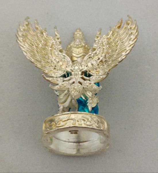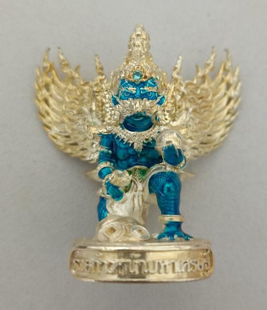 วัดใจเคาะเดียวแดงจ้า พญาครุฑ หลวงพ่อพัฒน์ วัดห้วยดัวน เนื้ออาบเงินลงยาน้ำเงิน เคาะเดียวแดงจ้า