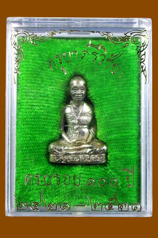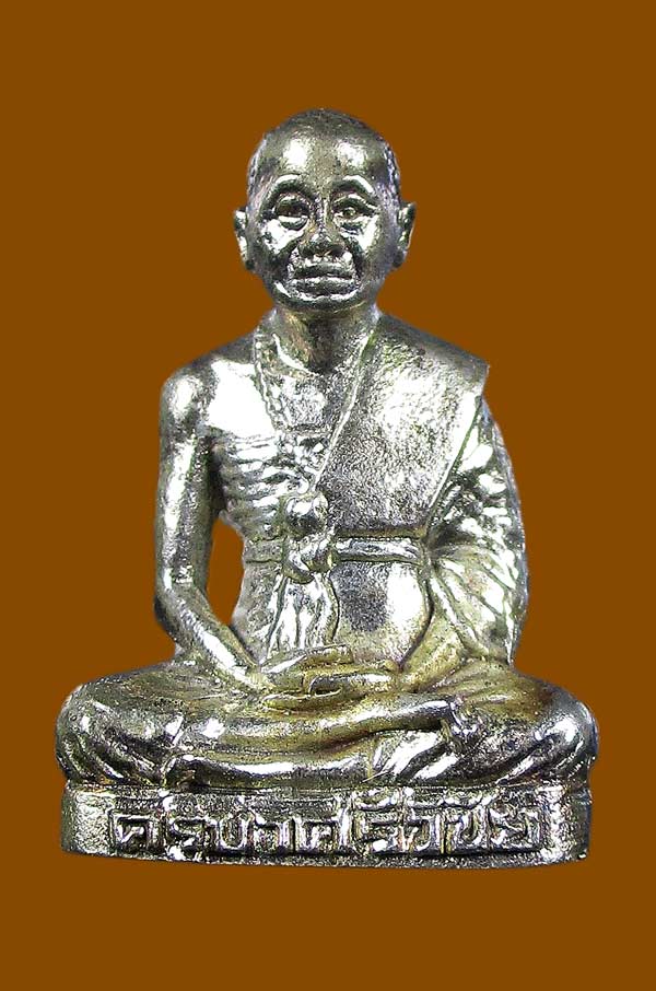 รูปหล่อ ครูบาเจ้าศรีวิชัย 100 ปี ออกวัดพันอ้น ปี2521 เนื้อนวะกะไหล่เงิน สภาพสวย พร้อมกล่องเดิม